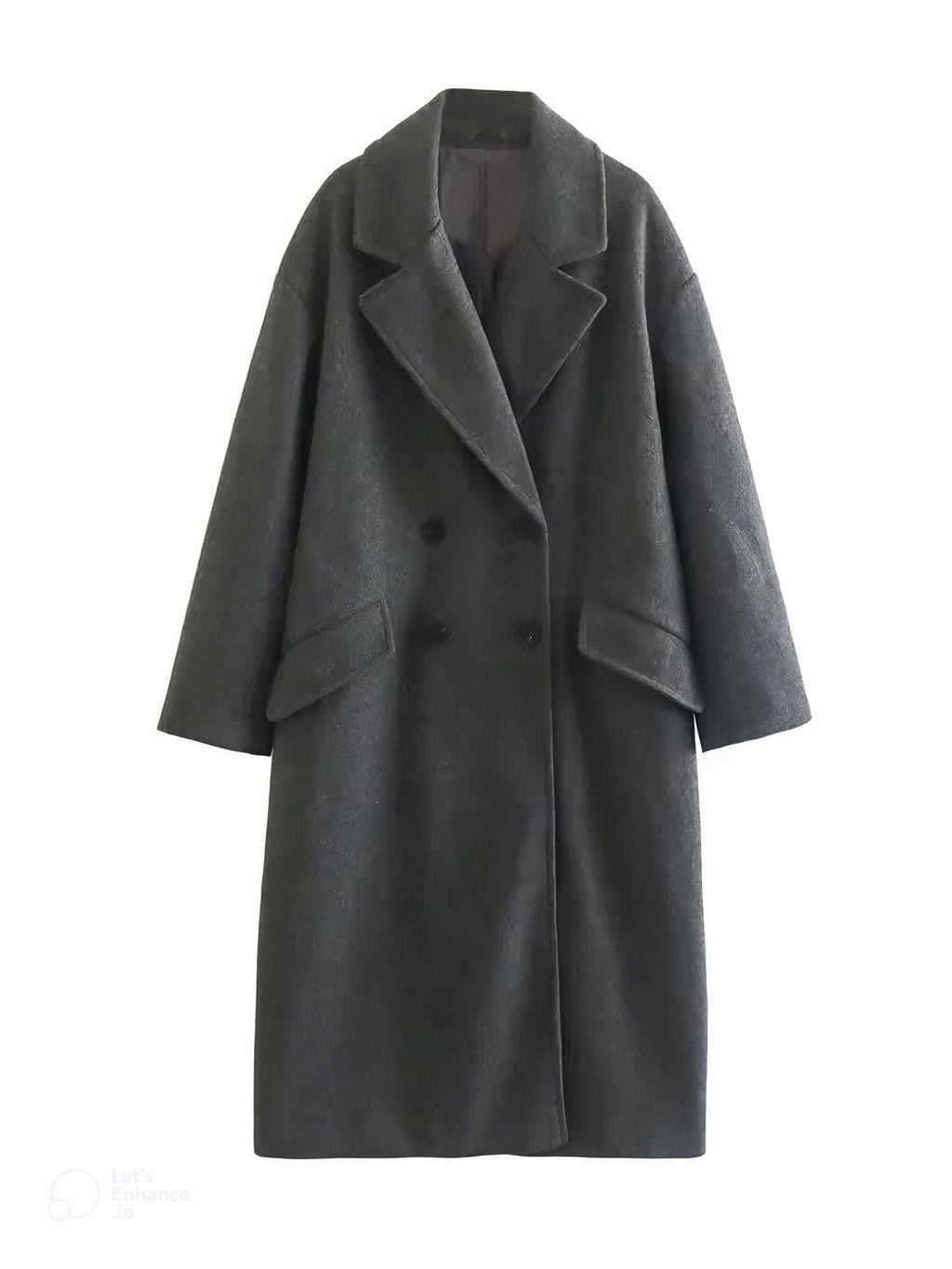 Destaque-se com a gola virada para baixo e o fecho duplo que não apenas aquece, mas também confere um toque sofisticado ao seu visual. Cada detalhe é cuidadosamente projetado, desde os bolsos até o abotoamento duplo, garantindo um design harmonioso e funcional.